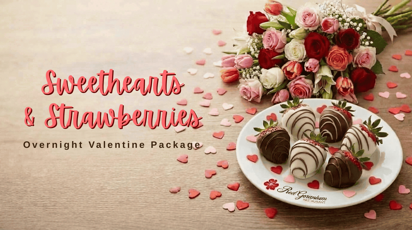 Let us help you celebrate your love at the New Harmony Inn. A romantic floral arrangement from Petal and Patch and six chocolate-dipped strawberries from Heather’s Baked Goods will be waiting in your room upon arrival. Your stay also includes a $50 dining credit to the Red Geranium Restaurant for a memorable romantic dinner.