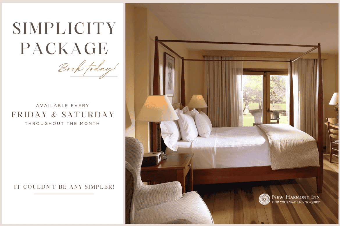 Experience the Warmth and Wonder of the Holidays in New Harmony. Celebrate the season in timeless New Harmony style with our exclusive Holiday Package. Available beginning Black Friday through December 20, this special offering combines comfort, charm, and thoughtful seasonal touches.