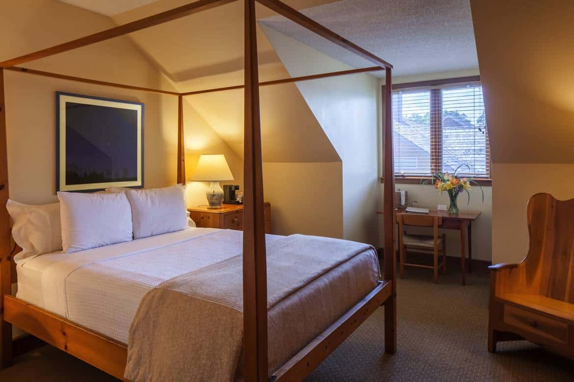 Located within the Riverbend building, the Standard Queen rooms offer guests modern hotel accommodations with one (1) Queen size bed. Carpeted floors, courtyard views, Harmonist-style furnishings, and individually selected artwork await the guests choosing this room type.